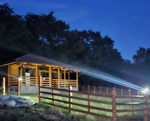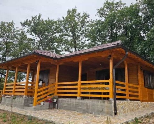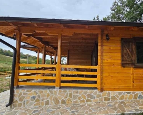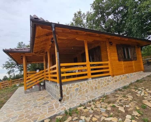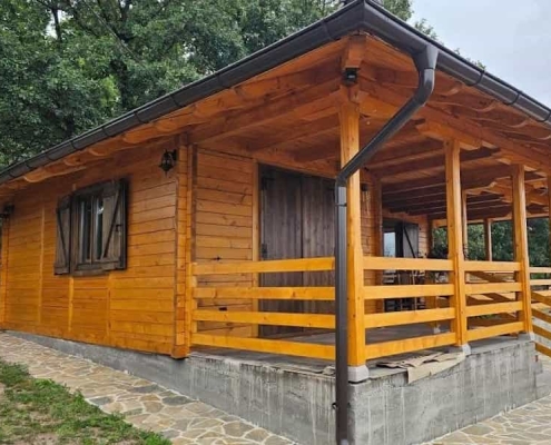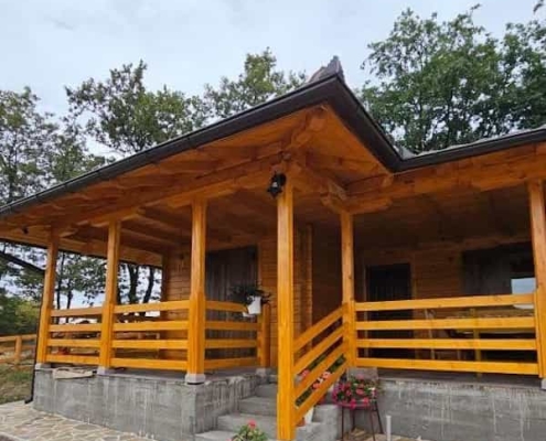 Okružena visokim drvećem i netaknutom prirodom, ova brvnara savršeno se uklapa u ambijent i pruža pravi planinski mir. Terase su osmišljene kao idealno mesto za odmor i uživanje u pogledu na prirodu, dok kvalitetna izrada u drvetu osigurava dugotrajnost i otpornost na sve uslove.