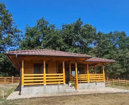 Na Zlatiboru smo izgradili brvnaru vikendicu od 50 kvadrata sa prostranim terasama od 25 kvadrata. Pored same brvnare urađena je i drvena ograda, koja zaokružuje celinu i daje dodatni osećaj topline i sigurnosti.
